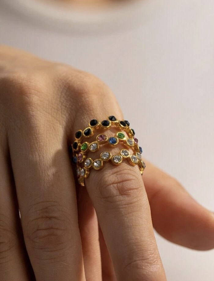 Δαχτυλίδι από ανοξείδωτο ατσάλι σε χρυσό χρώμα με λευκά ζιρκόν
