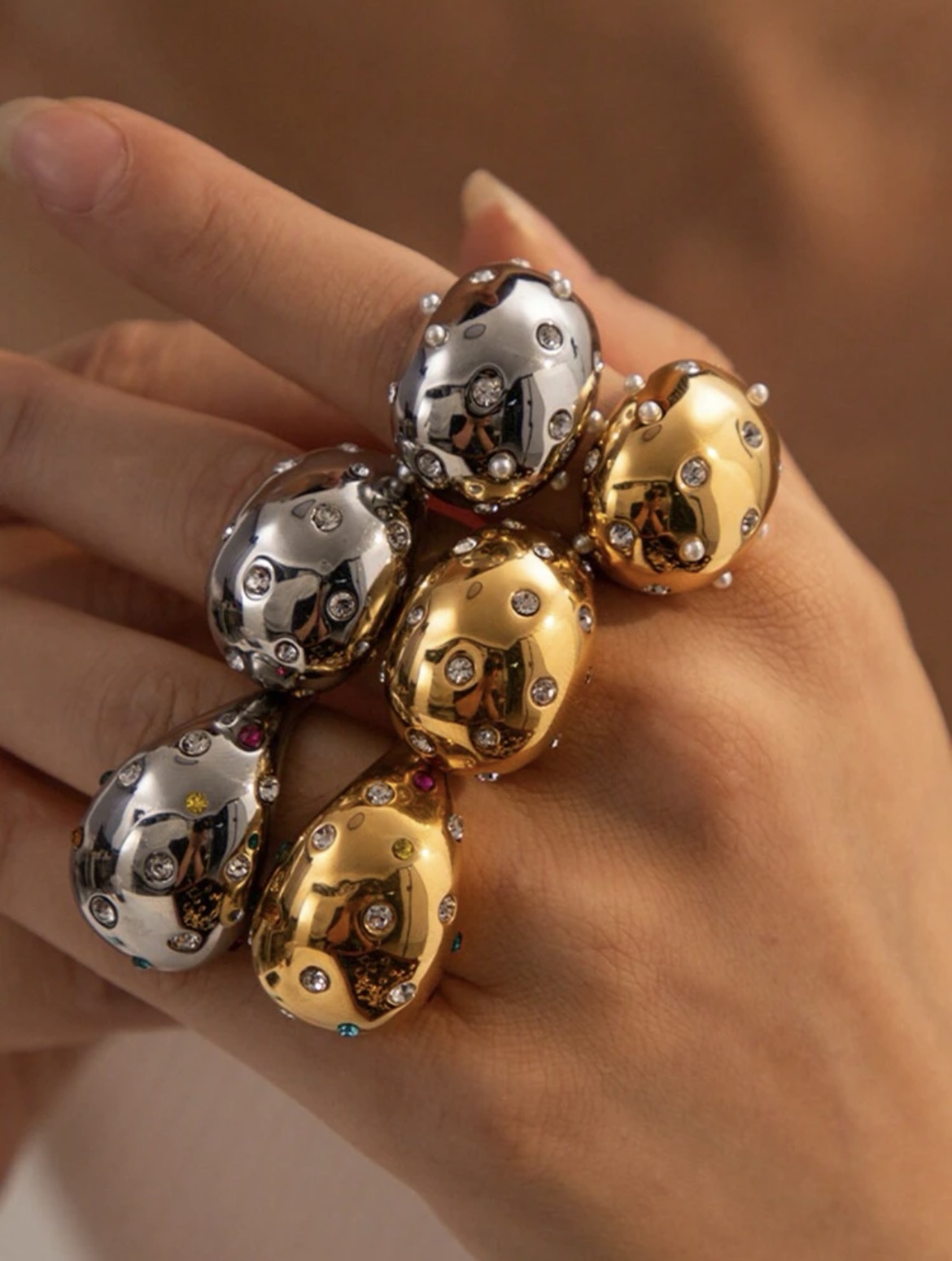 Δαχτυλίδι από ανοξείδωτο ατσάλι σε χρυσό χρώμα με σταγόνα σχέδιο