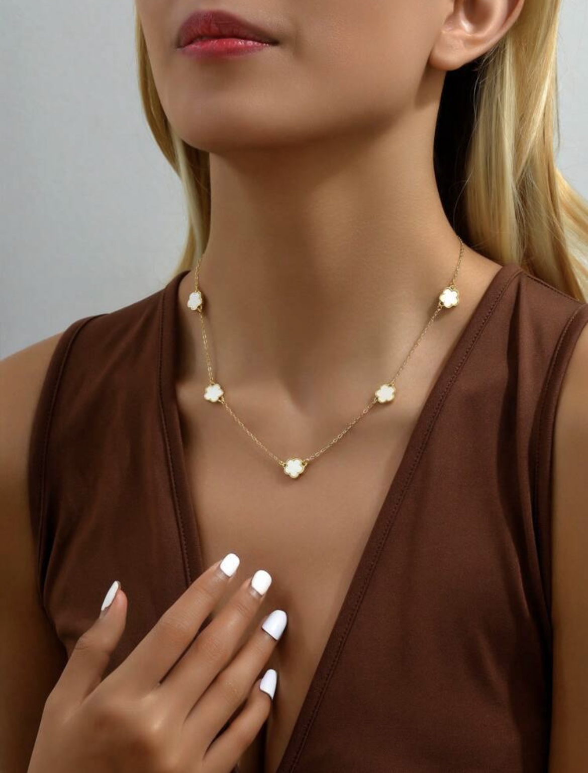 Κολιέ χρυσό με μοτίβο λουλούδια σε λευκό χρώμα