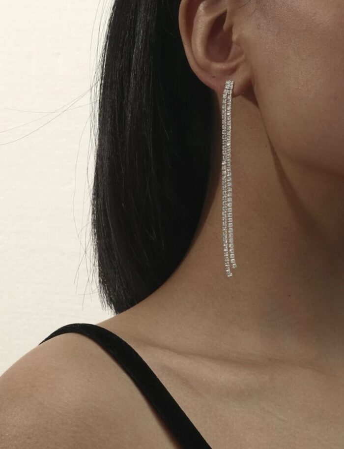 Ασημί σκουλαρίκια με 2 σειρές λευκά ζιρκόν