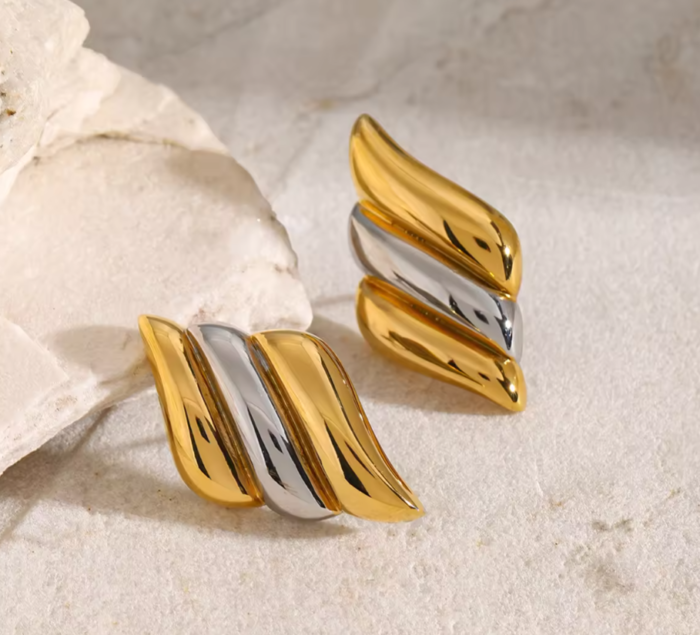 Σκουλαρίκια μίξη ασημί-χρυσό ατσάλι