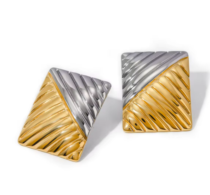Σκουλαρίκια τετράγωνα με ραβδώσεις χρυσό και ασημί