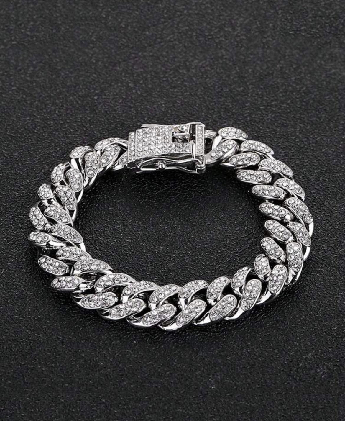Βραχιόλι hip hop αλυσίδα ασημί με λευκά ζιρκόν
