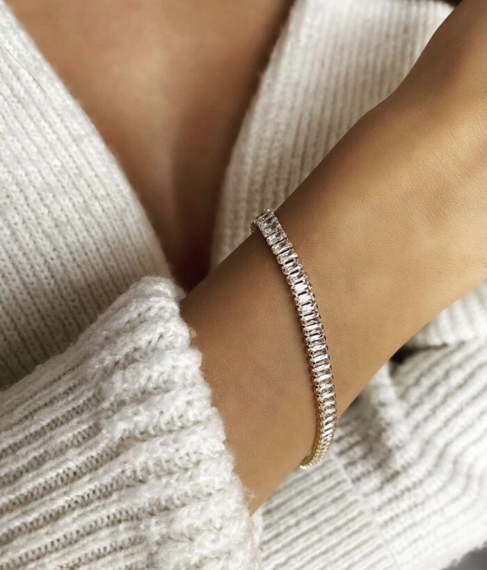 Βραχιόλι από ανοξείδωτο ατσάλι σε ασημί χρώμα με τετράγωνα λευκά ζιρκόν